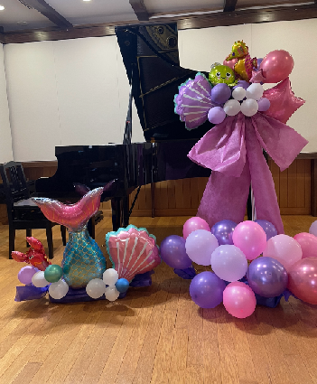 演奏会の飾りつけを素敵💓にしてます。かわいいドレス姿で思い出の写真を撮ってください